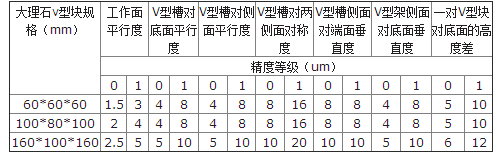 大理石v型塊按國家GB4972-85標準制造,一般都成對供應,是一個四棱體,四個工作面上或四個尺寸不同的90度的槽。大理石v型塊采用優(yōu)質“濟南青”石料經(jīng)機械加工和手工精磨制成,具有精度高、壽命長、耐酸堿、不易變形等優(yōu)點,適用于機械加工、零部件制造行業(yè)的精密檢驗、精密測量和精密劃線、定位工作。大理石v型塊檢測圓柱體的理想工具。表中的形位公差指底面的平面度和V型槽的軸線對底面的平行度。如果需要,其它面也可根據(jù)需要加工精度。